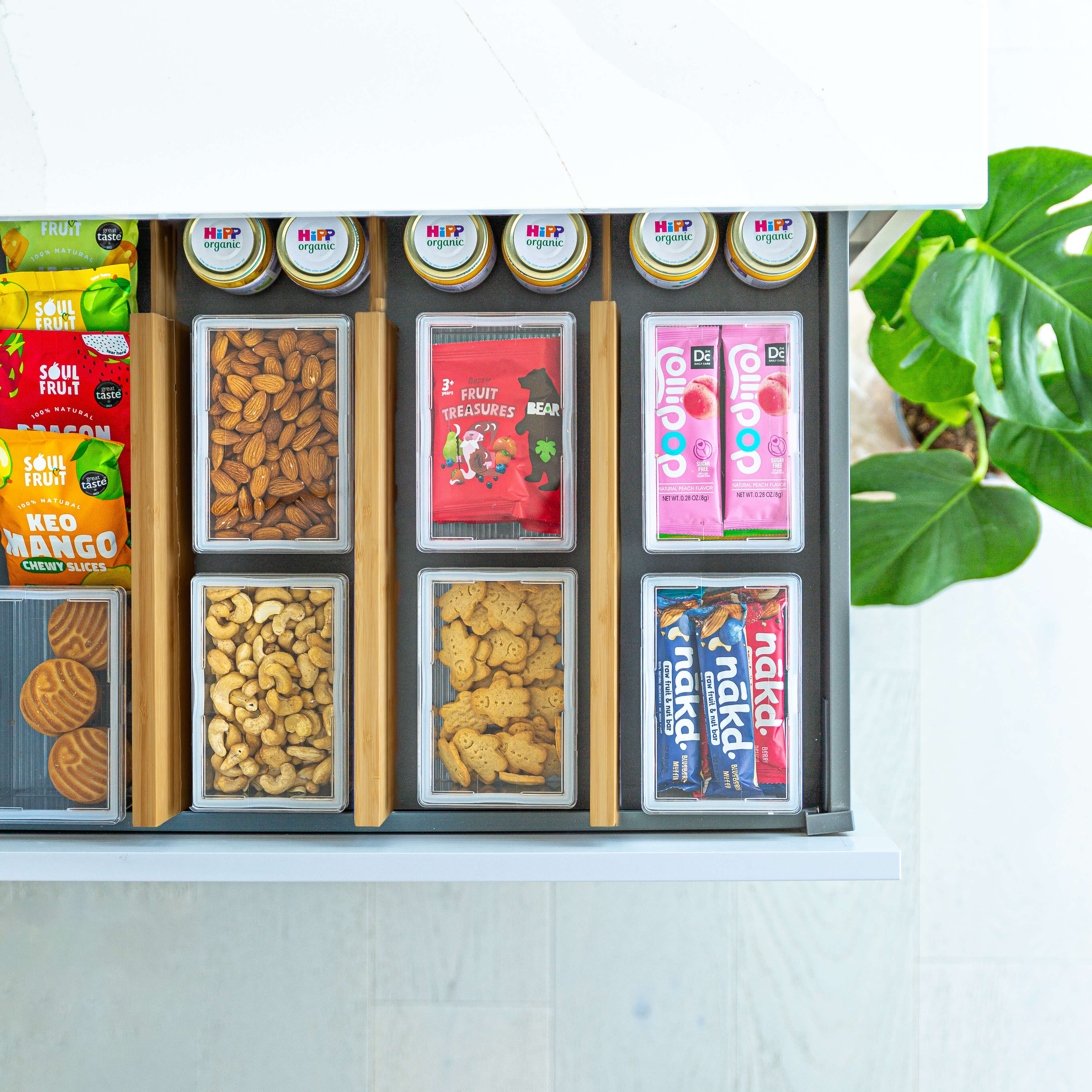 Use multiple dividers to split one drawer into categories, utensils, gadgets, or snacks each get their own space.